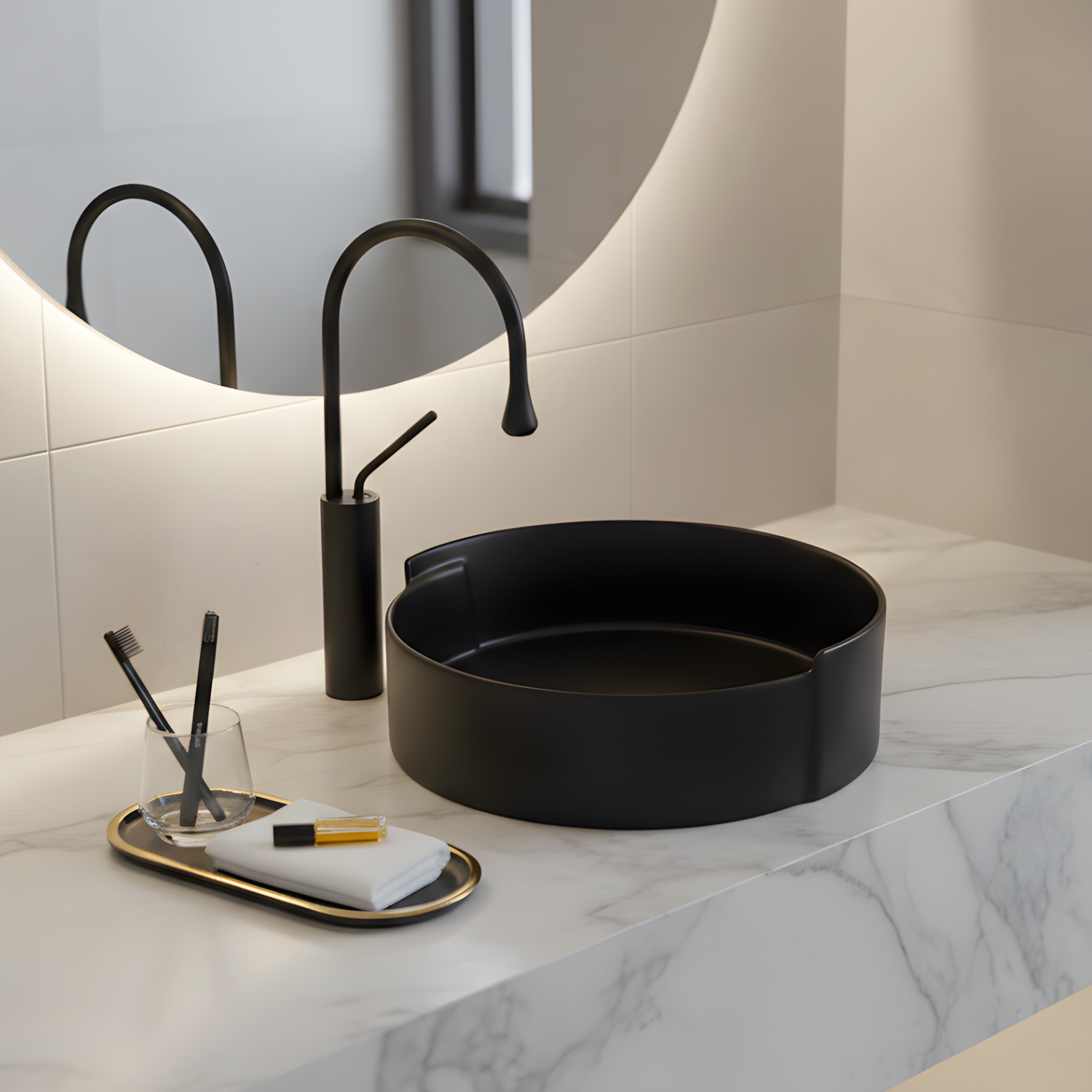 Elevate your bathroom design with the LAVISH 017 17″ Black Round Ceramic Vessel Sink. Perfect for modern and simple spaces, this above-counter basin delivers both style and functionality. Its durable ceramic construction ensures long-lasting use while maintaining a sleek, polished finish that is easy to clean. The round design adds elegance to any bathroom countertop, making it a standout centerpiece. Ideal for homeowners looking to combine aesthetics with practicality, this vessel sink complements a wide range of faucets and countertops. Transform your daily routine into a spa-like experience with this elegant, easy-to-maintain ceramic sink.