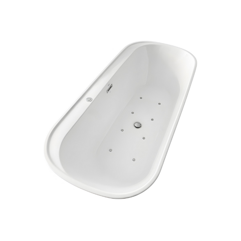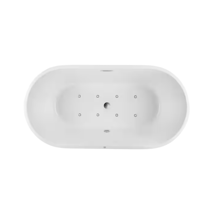 Transform your bathroom into a spa-inspired retreat with LAVISH L02562 Air Bubble Freestanding Bathtub. Constructed from 100% acrylic board reinforced with FRP, this tub is durable yet lightweight for easy installation. Equipped with overflow and drainer and 8 integrated air bubble jets, it delivers a relaxing and therapeutic soaking experience. The smooth, high-gloss acrylic surface is scratch-resistant and easy to clean, keeping your tub looking pristine for years.