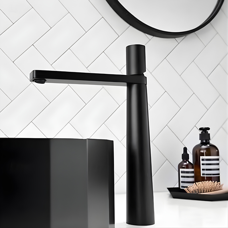 Bring modern elegance to your bathroom with the LAVISH 184 High Profile Matte Black Vessel Faucet with Pop-up Drain. Made with premium materials, this single-handle faucet resists scratches, rust, and tarnish for long-lasting durability. Its brushed stainless finish helps prevent fingerprints and water spots, keeping it clean with minimal effort. Designed for easy installation, the faucet allows quick connection of hot and cold water with a fast-connect system that ensures safety and prevents pipe bursts. Sleek and functional, the LAVISH 184 adds sophistication and practicality to any bathroom vanity.