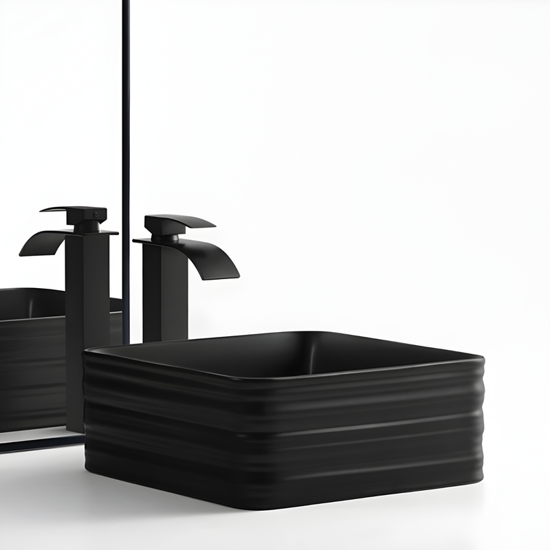 Transform your bathroom into a sleek, modern space with the LAVISH 3164 Matte Black Vessel Sink. Crafted from high-quality ceramic, this square vessel sink boasts a smooth, non-porous surface that resists stains and is easy to clean, saving you time and effort. Its generous basin provides both functionality and style, complementing a variety of interior designs from contemporary to classic. Simple to install and designed with elegance in mind, this bathroom sink is perfect for any home, apartment, or dressing room.