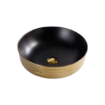 Transform your bathroom with the LAVISH 608 14.17″ Round Ceramic Vessel Sink, a perfect blend of simple style and functional design. The striking interior black finish and exterior gold create a bold, luxurious statement that complements modern bathroom aesthetics. Crafted from durable ceramic, this sink is resistant to chips and easy to clean, ensuring long-lasting beauty. Its above-counter design elevates any vanity, offering a sophisticated focal point for your space. Ideal for homeowners and designers seeking a unique, eye-catching bathroom centerpiece, this vessel sink combines form, function, and effortless maintenance in one elegant package.
