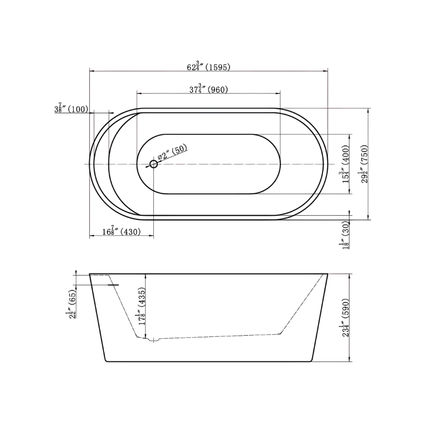 Be the first to review “LAVISH 2838 62.6″ Oval Freestanding Bathtub – High-Gloss Acrylic Soaking Tub with Top Center Drain – Modern Luxury Bathroom Tub”