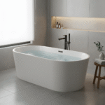 Transform your bathroom into a spa-inspired retreat with LAVISH 2522 66.5″ Oval Freestanding Bathtub, available in a sophisticated flat white or black high-gloss acrylic finish. Crafted from premium acrylic, this modern soaking tub features a sleek oval silhouette and a center left drain, combining simple style with everyday practicality. Designed for comfort and relaxation, the ergonomic shape offers the perfect soak, while the scratch-resistant, easy-to-clean surface ensures long-lasting durability. Ideal for small to medium-sized bathrooms, this freestanding bathtub delivers both elegance and functionality, whether in a master ensuite or guest bathroom. Its compact, space-saving design brings luxury and modern appeal without compromise.