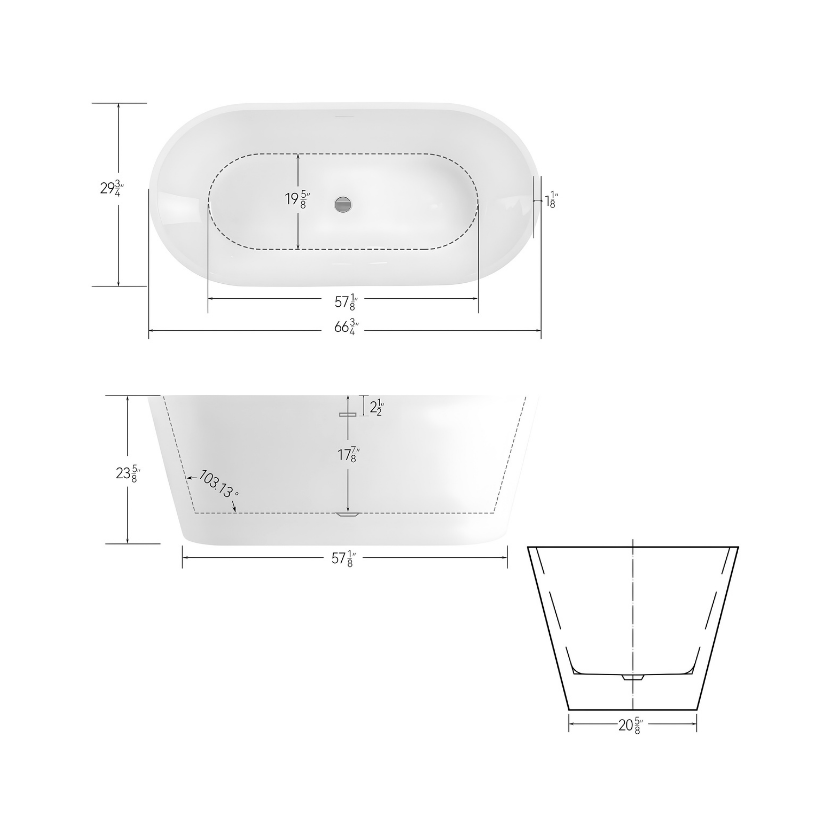 Indulge in luxury with LAVISH 2136 67″ White Oval Freestanding Bathtub. Its elegant oval design and center drain make it perfect for modern bathrooms. Crafted from high-gloss acrylic, this soaking tub is durable, easy to clean, and a stunning centerpiece for any simple space.