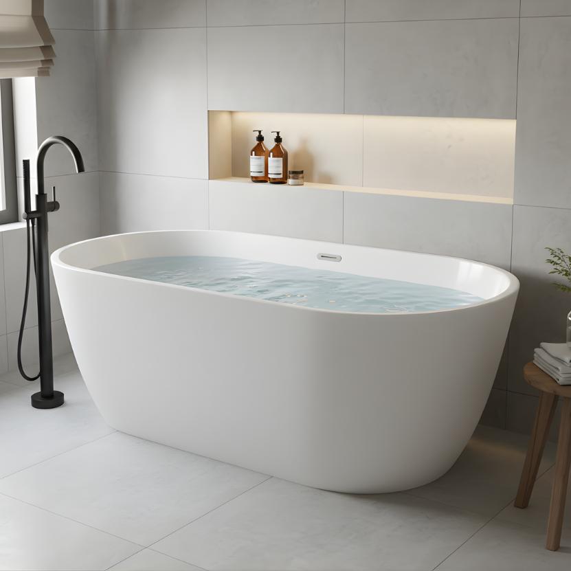 Be the first to review “LAVISH 2538 67″ Oval Freestanding Bathtub – White High-Gloss Acrylic Soaking Tub with Center Left Drain – Modern Luxury Bathroom Tub”