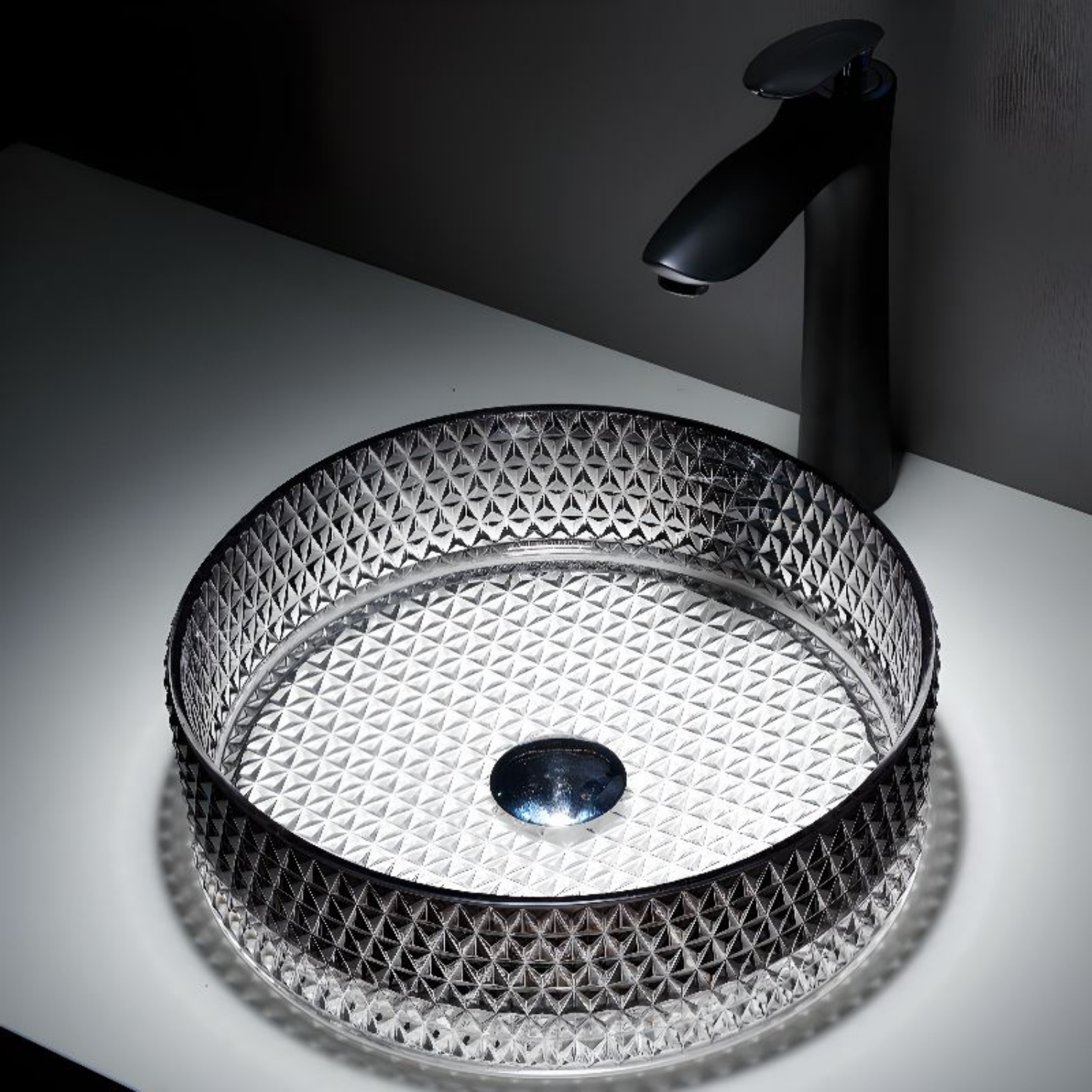 LAVISH 821 Round Glass Vessel Sink – Modern Crystal Glass Bathroom Vanity Above-Counter Wash Basin