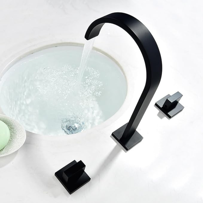 Elevate your bathroom experience with the LAVISH 83H04 9.8″ Matte Black 2-Handle Widespread Bathroom Sink Faucet with Pop-up Drain. Crafted from solid brass with ceramic disc valves that exceed industry longevity standards by over two times, this faucet guarantees durable performance for years to come. The waterfall spout provides a smooth, elegant flow, while the dual solid brass lever handles make it easy to control hot and cold water. Its deck-mounted design and simple matte black finish add a modern, stylish touch to any bathroom vanity. Combining functionality, durability, and elegance, this faucet is ideal for homeowners seeking a high-quality, long-lasting fixture.