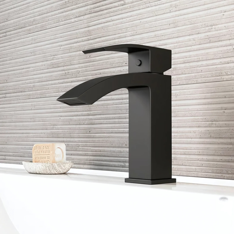 Upgrade your bathroom with the LAVISH B016 Black Deck Mounted Basin Faucet with Pop-up Drain. Constructed from high-quality brass, this faucet ensures durability and resistance to corrosion. The single-lever handle provides smooth control of water flow and temperature, while the ceramic disc cartridge guarantees leak-free performance. Designed for deck-mounted, single-hole installation, it is easy to install and maintain. The nozzle resists mineral buildup, making cleaning effortless. With a 4.5 L/min (1.2 gpm) flow rate and water pressure-tested for industry standards, the LAVISH B016 combines efficiency, style, and functionality in a compact and modern design.