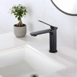 The LAVISH B551-01 Black Basin Faucet with Pop-up Drain combines style, durability, and functionality. Made from premium brass, this single-handle mixer tap provides smooth hot and cold water control and long-lasting performance with its ceramic disc cartridge.