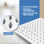 Transform your daily shower into a spa-like experience with the LAVISH H122 6″ Square Shower Head, designed with a single full rain spray for consistent high-pressure water flow, even in low-pressure conditions. Ideal for homeowners seeking a premium bathroom upgrade, this shower head combines performance and comfort in a sleek, modern design. Its versatile build allows for handheld use, offering added flexibility for everyday showering needs. Durable, easy to install, and built for daily use, it’s perfect for master bathrooms, guest bathrooms, or compact spaces.