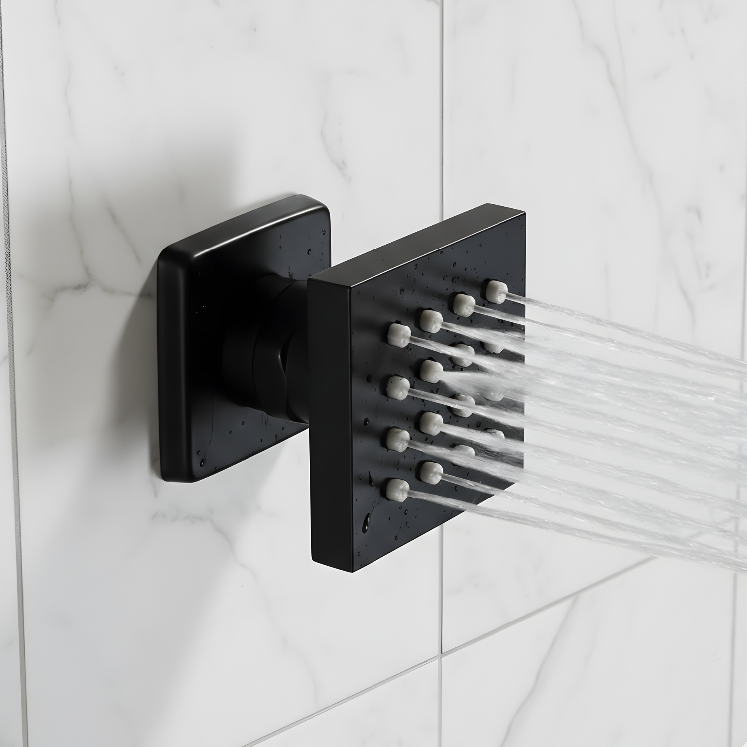 Tags: bathroom shower, durable body jets, easy install jets, full spray jets, high pressure jets, luxury bathroom, massage body jets, matte black jets, modern bathroom, premium shower jets, revitalizing shower, shower accessories, shower body jets, spa shower jets, square body jets