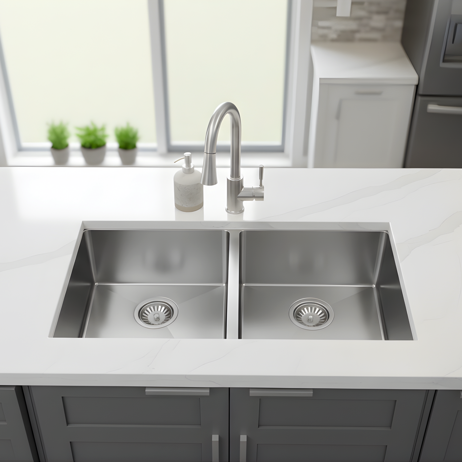 Upgrade your bar or prep area with the LAVISH HU31184 31″ Rectangular Stainless Steel Bar Sink, built for durability, performance, and modern style. Constructed from 18-gauge 304 stainless steel with a brushed fine-grain finish, it resists rust, stains, and scratches. The double-basin design features a US and Canada standard 3½” drain opening and full undercoating with anti-vibration pads to reduce noise and condensation. Suitable for undermount or top-mount installation, it includes a strainer for fast, hassle-free setup.