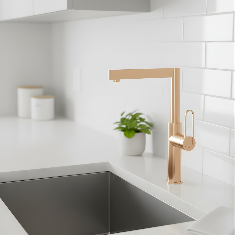 Bring modern elegance to your bathroom with the LAVISH K03381 Gold Waterfall Bathroom Faucet. Its architectural design features sharp geometric lines and a tall cylindrical body, making it a striking centerpiece. The waterfall spout creates a gentle cascading stream, mimicking a natural waterfall for a serene and elegant experience. Crafted from high-quality materials with a luxurious brushed gold finish, this faucet resists tarnish and corrosion while adding a warm, upscale aesthetic. The loop-style single handle provides effortless control of water flow and temperature. Designed specifically for vessel sinks, its tall profile ensures clearance above the countertop. Perfect for modern bathrooms seeking both style and functionality.