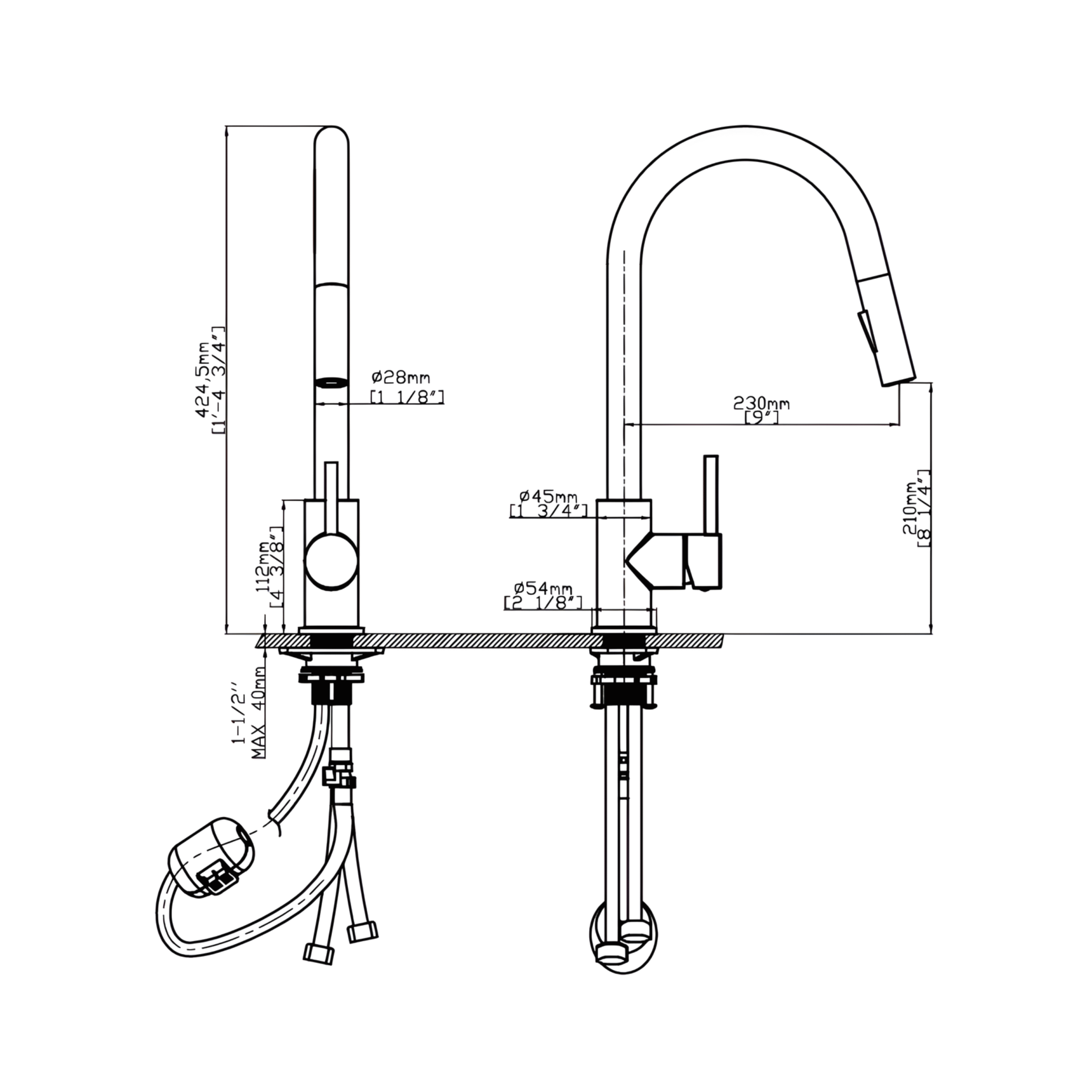 The LAVISH K143 Pull Out Kitchen Faucet combines modern style, functionality, and durability. Crafted from high-quality brass, this faucet is corrosion-resistant and built to last. Its single-handle design with ceramic disc cartridge provides smooth and precise control of hot and cold water. The pull-out spout adds versatility, making it easy to fill pots or clean the sink. Flexible supply lines with ³/₈” or ⁹/₁₆” compression fittings allow for convenient installation. The LAVISH K143 enhances any kitchen while offering reliable, water-efficient performance.