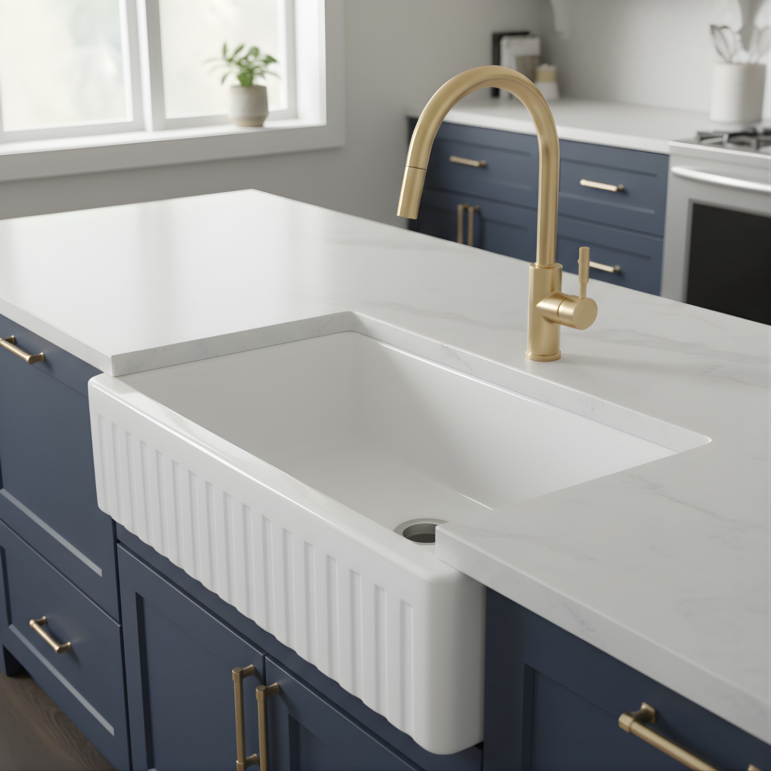 Bring elegance and practicality to your kitchen with the LAVISH KS03 30″ Rectangular White Ceramic Kitchen Sink. Made from high-quality ceramic, this sink is scratch-resistant and built to withstand daily kitchen use while maintaining its sleek white finish. The single basin design offers ample space for washing large pots, pans, and dishes, while the center drain optimizes water drainage for efficiency. Its farmhouse apron style adds a classic touch to both modern and traditional kitchen designs.