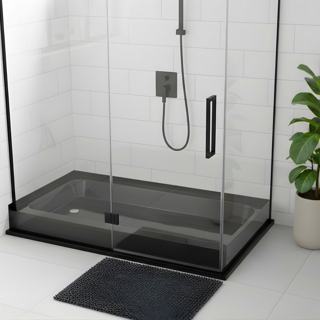 Tags: 60 inch shower base, accessible shower pan, contemporary shower pan, durable shower tray, easy-clean shower base, fibreglass reinforced acrylic base, glossy black shower base, high gloss shower tray, left drain shower pan, low profile shower tray, low threshold shower pan, modern bathroom shower base, shower pan base, sleek black shower base, waterproof shower base with flange