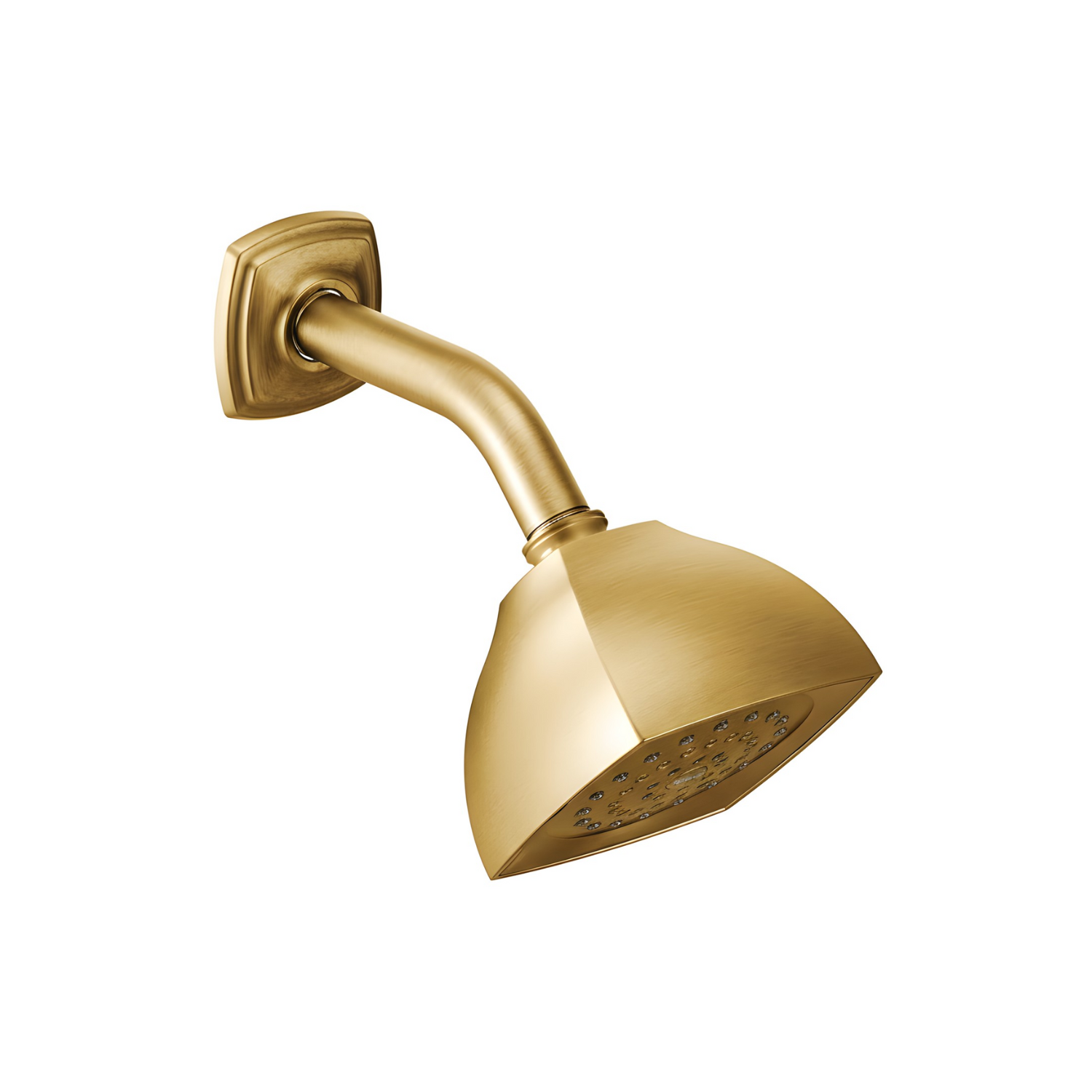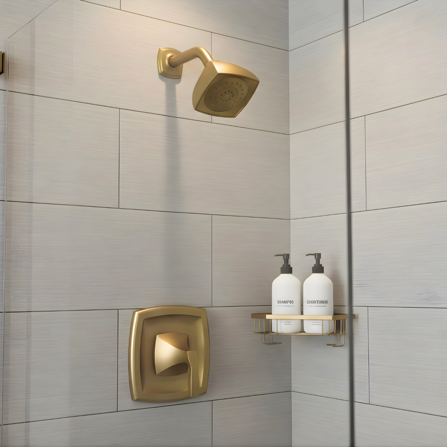 The Moen T2692BG Voss Posi-Temp® Shower Trim offers timeless style with rich brushed gold tones and refined detailing. Its Posi-Temp® pressure-balancing valve helps maintain consistent water temperature, protecting against sudden changes in hot or cold water pressure. The 4-1/16″ diameter shower head delivers a smooth, full spray for a relaxing shower experience. Built on the Moen M-PACT common valve system, this trim allows future style updates without replacing plumbing. The durable LifeShine® finish resists tarnishing, corrosion, and flaking, and the design meets ADA specifications for accessibility.